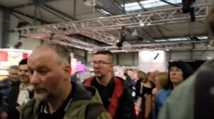 Und dennoch: Die Selbstdarstellung als „alternatives“ Forum, das vermeintlich unterdrückten oder ausgegrenzten Positionen Raum biete, prägte die Atmosphäre vor Ort. Viele Gäste beschrieben sich als Opfer von „Cancel Culture“ oder als marginalisierte Stimmen im politischen Diskurs, die sich vom „Mainstream“ bedroht fühlen. Neben dem substanzlosen Geraune von „Cancel Culture“, waren die enorm lange Wartezeit an den einzigen zwei Imbiss-Ständen der Dauerbrenner. Infrastrukturell war die Veranstaltung überfordert: eine Dreiviertelstunde Wartezeit für einen Kaffee und ein Brötchen, Wasser gab es zwischenzeitlich nicht zu kaufen – in die Messe mit rein nehmen durften Besuchende eh nichts. In der Warteschlange besprachen diese vor allem ihre Sorge, auf Fotos erkannt zu werden und dadurch berufliche Nachteile zu erleiden.