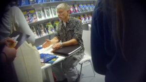 Trotz einem kompletten Kleidungswechsel nach der Veranstaltung und der darauffolgenden Signierstunde, konnte Pielka seine Anonymität jedoch nicht wahren: die verdeckten Aufnahmen zeigen ihn am späten Nachmittag im Gespräch mit Götz Kubitschek, der ihm währenddessen einige Scheine zusteckt, während seine Partnerin solange Kubitscheks Bier halten durfte. Der Rummel um „Shlomo Finkelstein“ gibt viel Aufschluss über den eigentlichen Charakter der Buchmesse. Die größtenteils durchschnittlich wirkenden Biedermänner in Begleitung ihren Partnerinnen, oft im Stil der sogenannten „Tradwife“, scharen sich um den Mann, der für „die Sache“ sogar in Haft wanderte. Sie alle sind Teil der menschenverachtenden Hetze, Pielkas Hass-Armee. Der nicht mal Dreißigjährige, der an der Front des Kulturkampfes von rechts steht, ist Symbol dafür, wie innerhalb des Milieus Hass und Hetze als Meinungsfreiheit verkauft wird.
